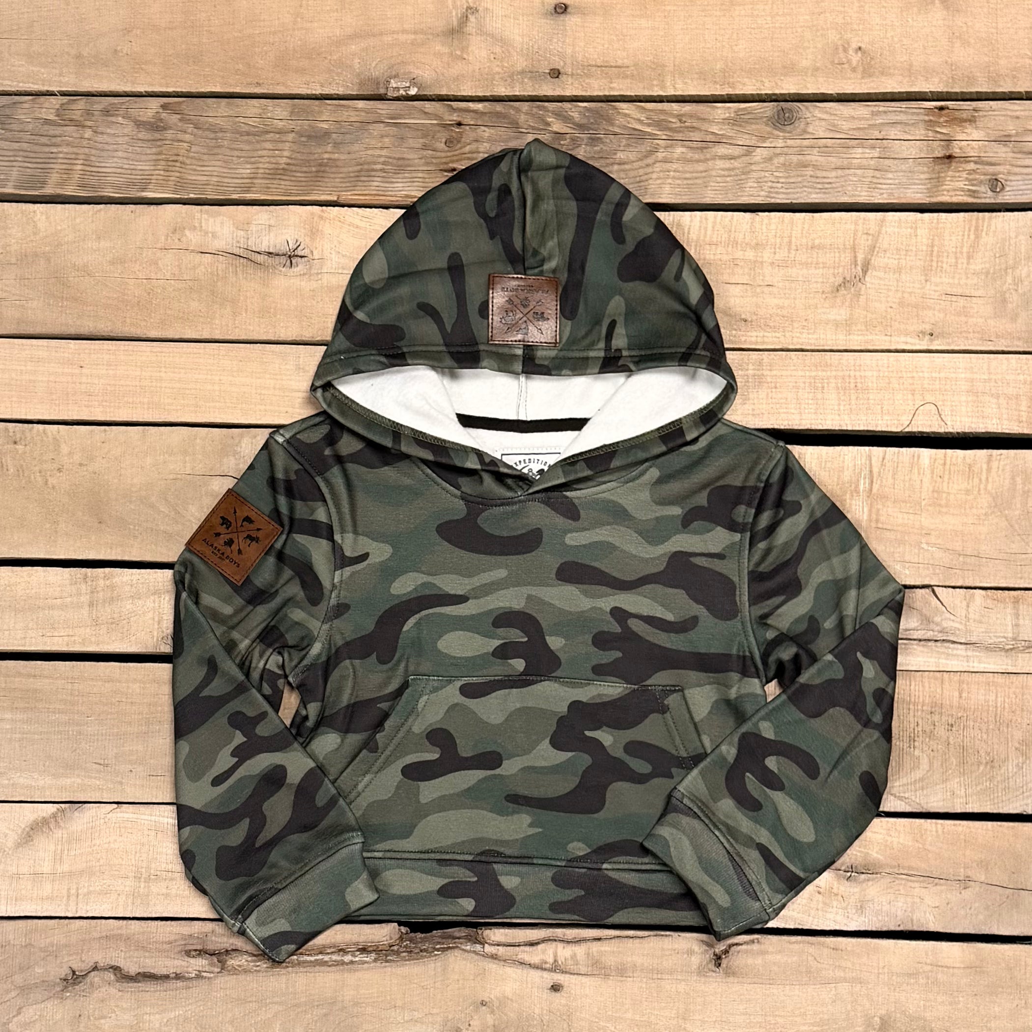 Leather patch on chest, sleeve and hood