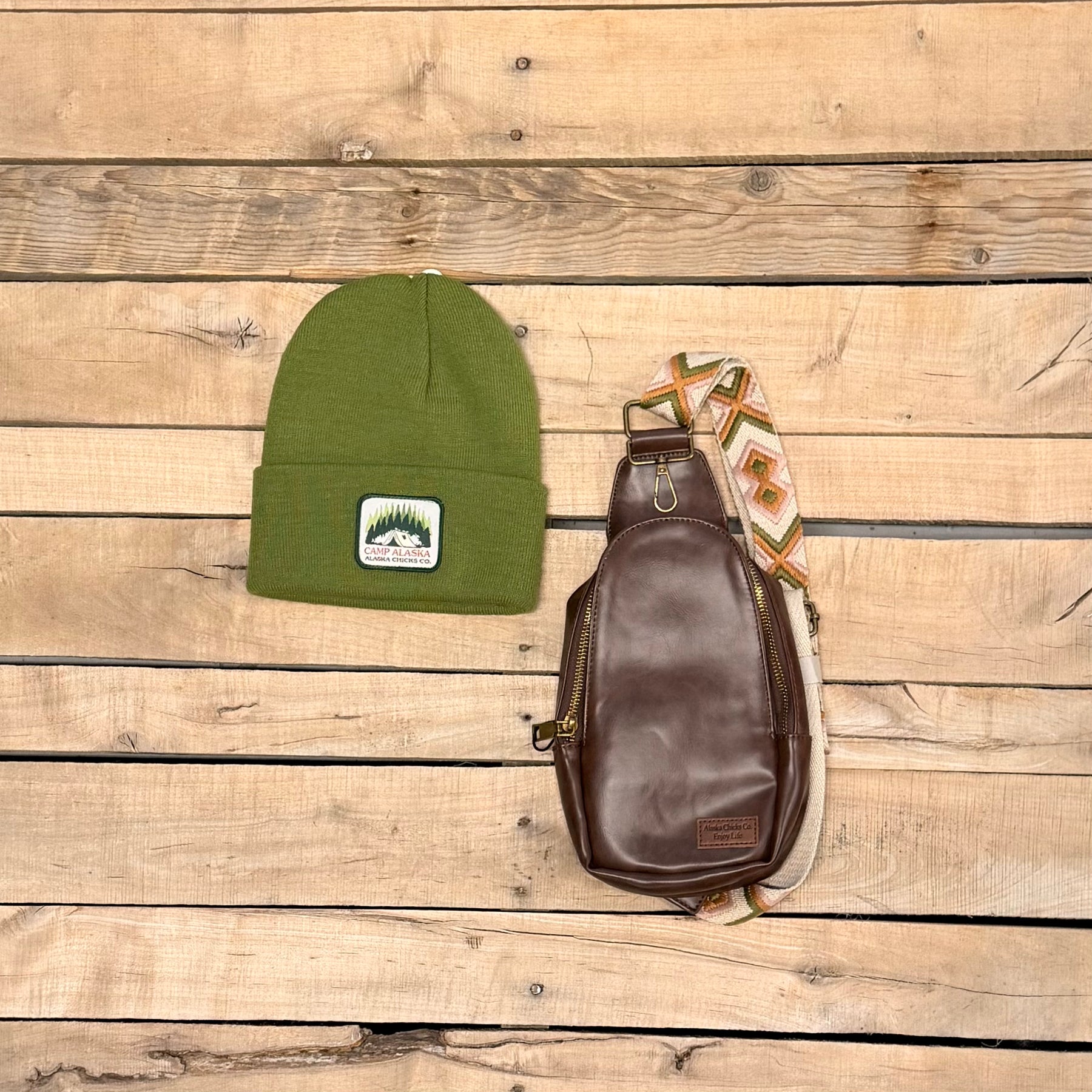 A gift bundle with a beanie and cross-body purse. $45 per bundle, a savings of $12!